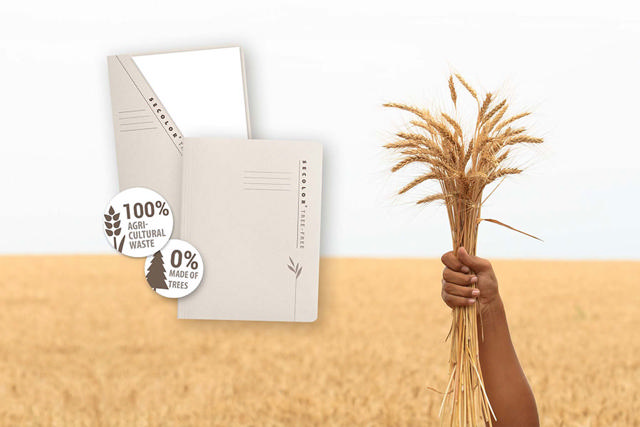 The elegant Tree-Free line is produced with cardboard made from agricultural waste.